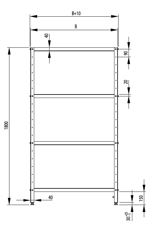 - Regalböden mit Höhe von 40 mm, verstärkt durch um 15 mm nach innen gebogene Böden