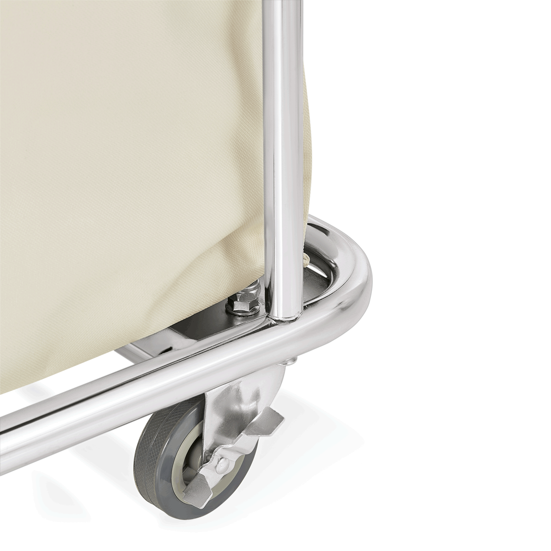Wäschewagen, Stahl verchromt, Nylon, creme weiß, 4 Rollen, 2 mit Bremse, 150 Liter