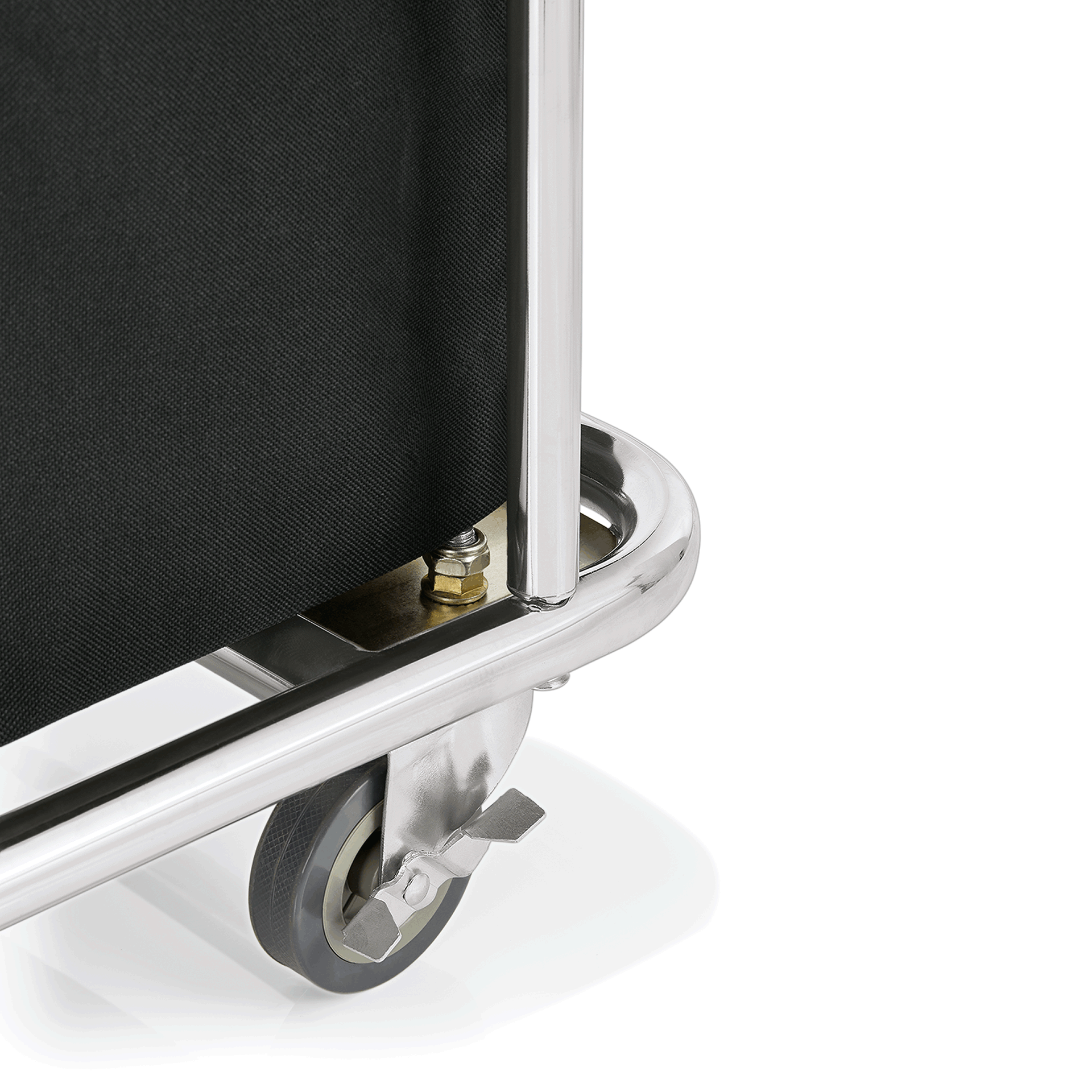 Wäschewagen, Stahl verchromt, Nylon, schwarz, 4 Rollen, 2 mit Bremse, 150 Liter
