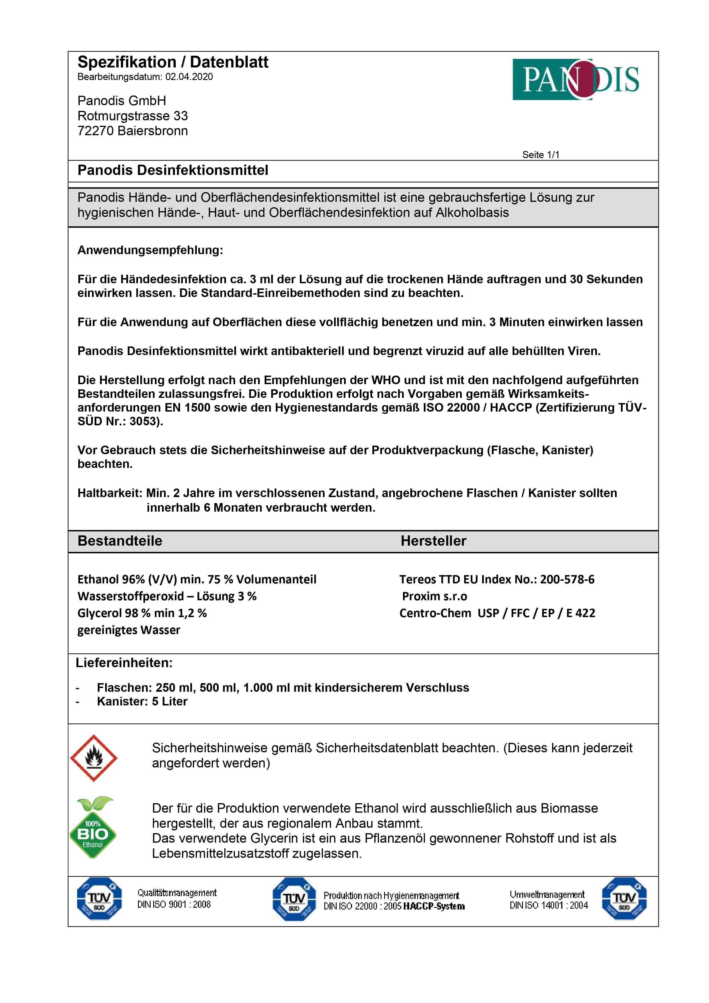 Weiterführende Links "Hand-Desinfektionsmittel 1 Liter, gebrauchsfertige Lösung zur Hände- und Hautdesinfektion"