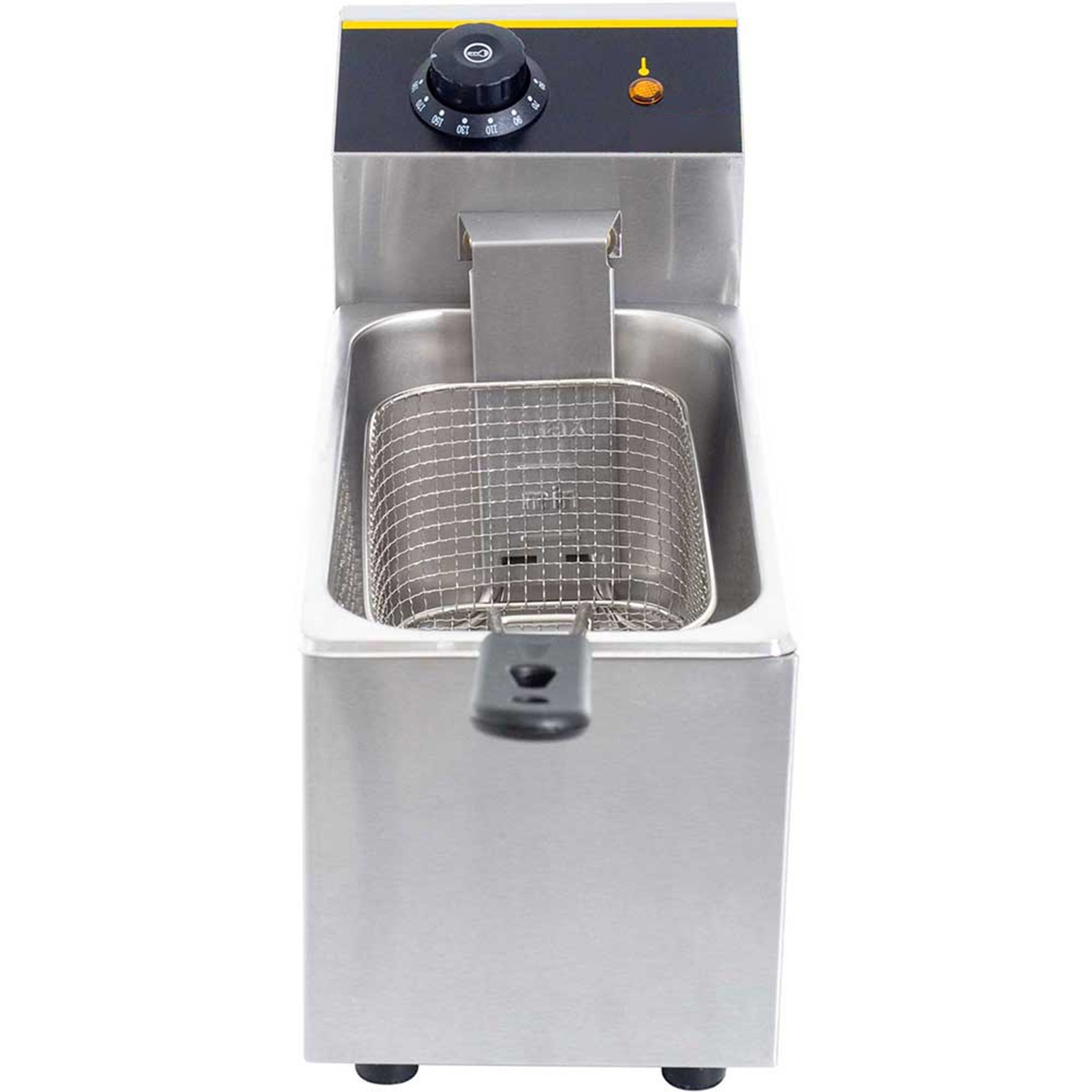 Unsere Gastro Fritteuse ist das ideale Tischgerät für die Gastronomie, wenn es um das schnelle und effiziente Frittieren geht. Mit einer Leistung von 2,2 kW und einem Fassungsvermögen von 3 Litern bietet sie ausreichend Platz für kleine bis mittelgroße Portionen. Die Fritteuse ist nicht nur praktisch und platzsparend, sondern überzeugt auch durch ihre Benutzerfreundlichkeit. Die Temperatureinstellung ist stufenlos von 60°C bis 190°C einstellbar und der Frittierkorb kann bequem entnommen werden.
