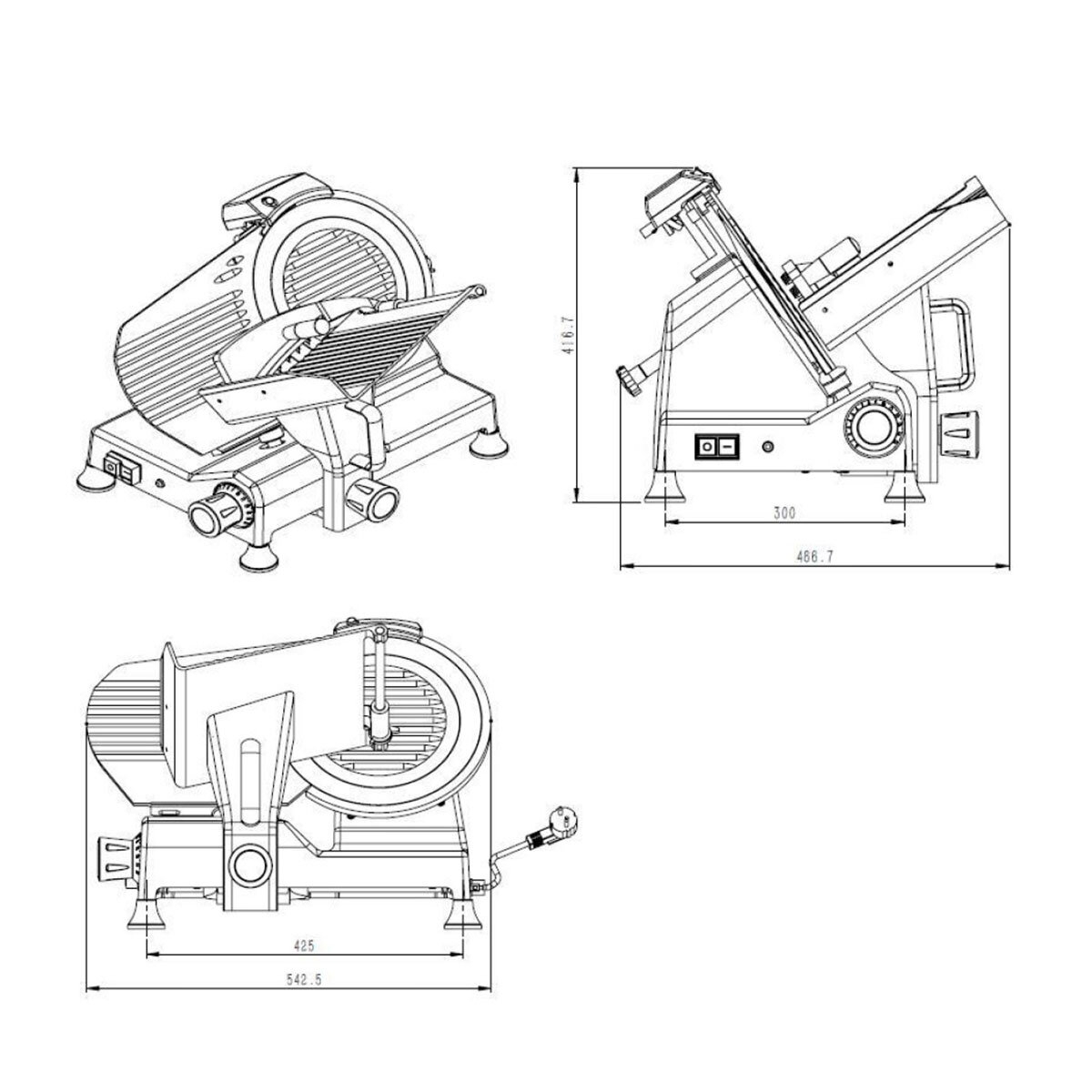 Aufschnittmaschine 250 mm , Tischgerät, 230 V, 0,15 kW
