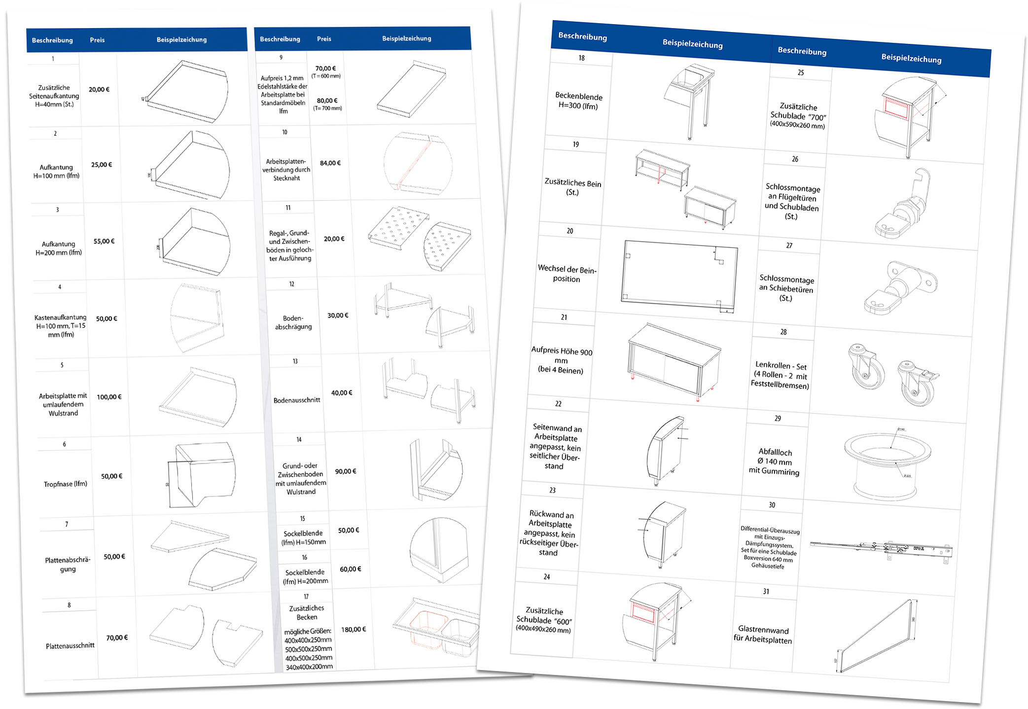 - Spültische, Regale, Wandhängeschränke und Sonderbau